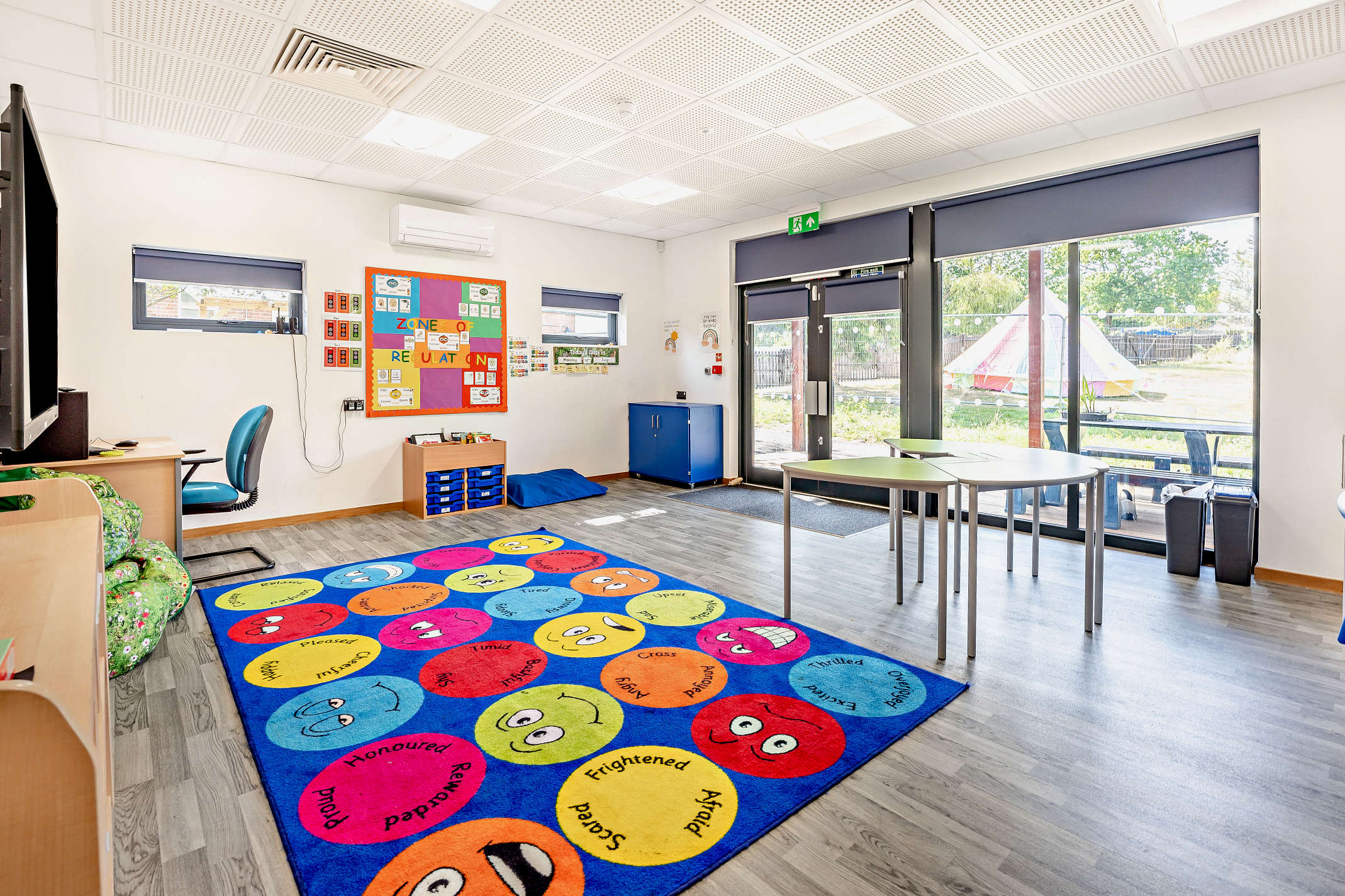 Often the ceilings in modular builds are very low so you feel very enclosed but our ceilings are of a really good height which gives a feeling of space. A lot of our children suffer from sensory processing issues and so the lighting and the feel of a space are very important, as are the acoustics. The acoustics in our building are very good. Although many modular builds are very echoey ours is not because of the ceiling tiles which are different to the rest of the school. We also have adaptive ventilation, due to our concerns about Covid, and air conditioning which are also great.