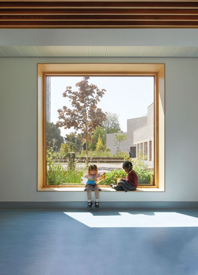 In response to its connection with community, Jasmine Ali, Deputy Leader of Southwark Council, describes the scheme as having “enabled this successful school to provide improved educational facilities for the local community. This project reflects the Council’s investment in education through our £200m investment in schools. Rotherhithe school is a beautiful building that lifts the heads and aspirations of its teachers, school staff and pupils. It is used by and at the heart of the community providing a positive and welcoming environment, improving the function of the school and its presence on the street.” As “a school within a garden”, a stimulating and protected outdoor environment for the children has been created, with direct access from each ground floor classroom. Beyond the principal public elements, two storeys of classrooms wrap around the site giving an intimate scale to a three-sided courtyard, inspired by magnificent red sycamore. Sadly, this tree suffered during construction and had to be replaced, but it will grow with the school and its strong colour inspired the red-oxide powder coating on the window frames. The courtyard contains a small amphitheatre and is overlooked by a playful range of windows, low enough for the youngest children to enjoy the landscape, and some set flush with the brickwork to create deep seats. The courtyard affords views right through the site and a constant sense of connection with nature and with others. Galiema Amien-Cloete said: “I'm a firm believer in outdoor learning and it definitely has a very important place in education. Sometimes this can be overlooked…but this building was designed around the premise: it's a school within a garden.” The council supported invention with areas of the brief that were specific to the school’s needs, where a different type of procurement might have been more rigid. The result is the carving out of intimate spaces for small group learning to suit different needs, under stairs and between classrooms, their quality enhanced with carefully detailed timber, referencing the area’s Scandinavian history, and the local historic timber trade. Like many urban schools, Rotherhithe Primary is also used extensively out-of- hours. A generous “welcome space”, directly off the entrance can be secured off to allow the school to become a society building and a meeting place for the community. The result is a school which recognises its community’s history, enhances the environment, builds children’s confidence, and embodies the vitality of its predecessor buildings.
