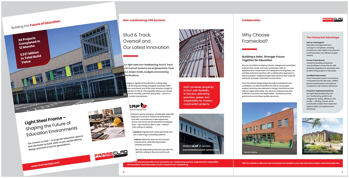 Frameclad is transforming education construction – delivering faster, safer and more sustainable buildings for today’s students and generations to come. To discover how their precision-engineered light steel frame systems can advance your next education project, visit: www.frameclad.com and download Building the Future of Education brochure.