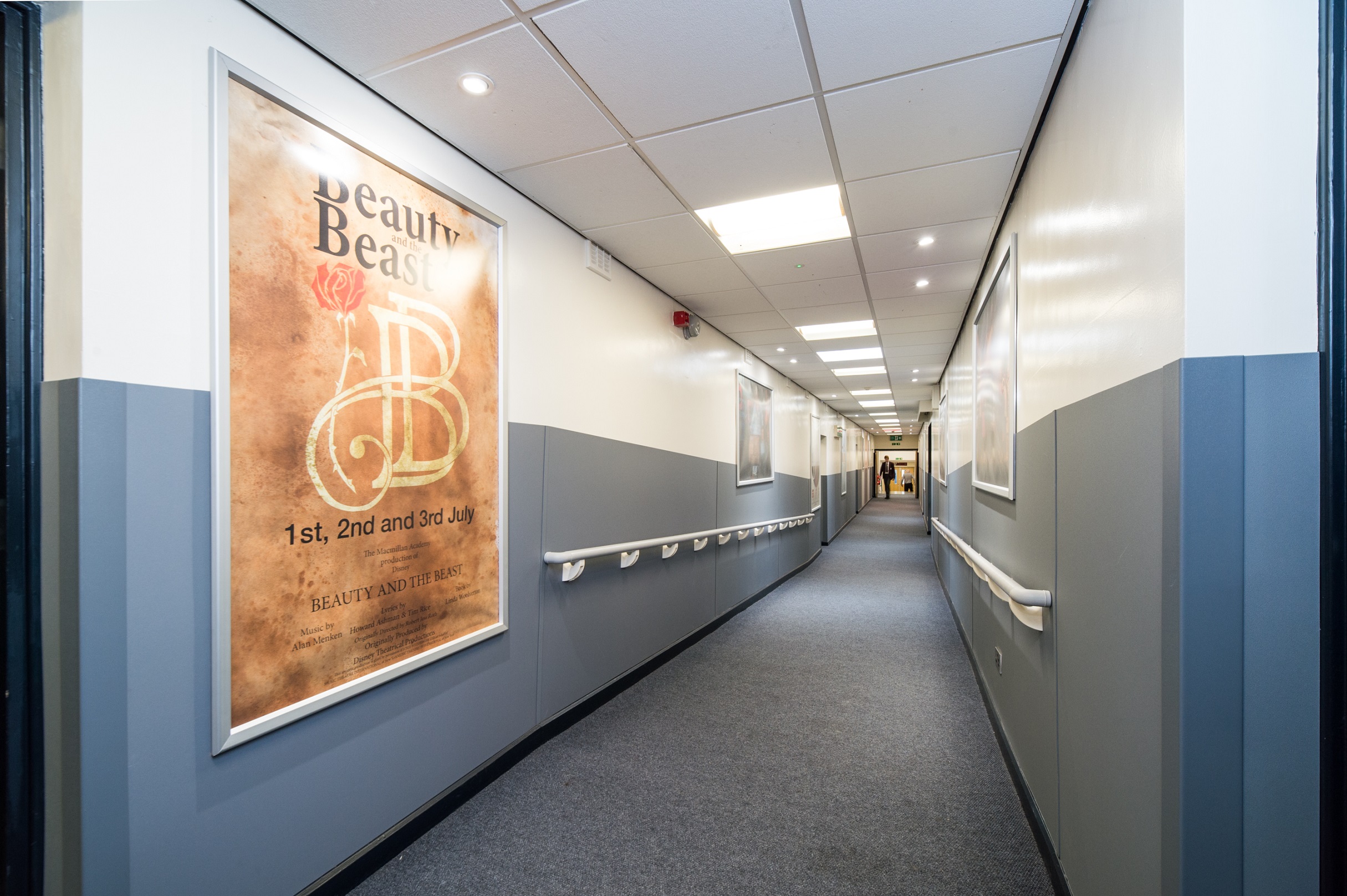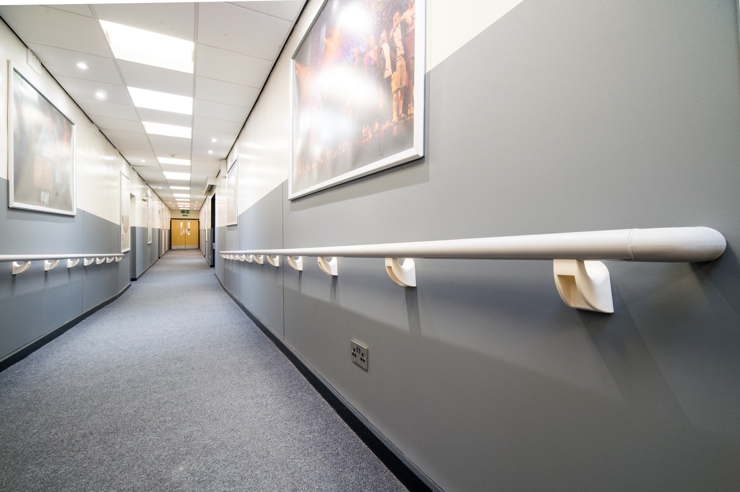 On the ramp areas of the hallways there is the addition of Yeoman Shield’s 50mm dia. PVCu handrail in Mid Grey mounted on cream PVCu under slung brackets.