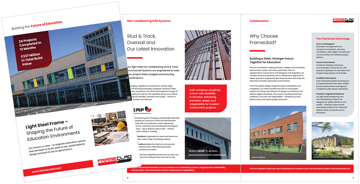 Find out more at www.frameclad.com and head to ‘Downloads’ for Building the Future of Education brochure.