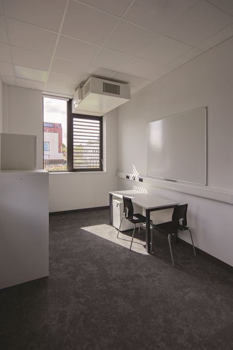 The fresh air is drawn in through the façade at high level, and exhausted through the same route, once natural air movement principles have circulated the air throughout the space. Being at high level, and the fresh air tempered as it is drawn into the interior space, there are no cold spots or draughts, optimising occupant comfort. Each MFS128 unit will efficiently and cost-effectively ventilate a typical 30 person classroom, costing as little as £5pa to operate(subject to energy prices). Associated Architects’ Asssociate Natalie Richardson explains: “The Department for Education guidelines suggest hybrid ventilation. The M&E consultants CPW proposed the combination of Gilberts’ façade louvres and MFS Fusion hybrid ventilation, as delivering a quality solution. We were happy to accept that advice.”
