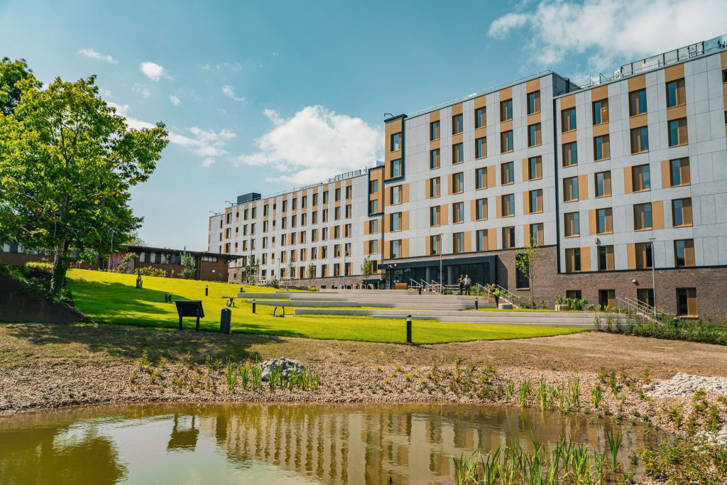 Constructed in three blocks of up to six storeys, the development comprises studio flats and clusters of four, six and eight bedrooms with en-suite or shared pod shower rooms. In total 900 beds.