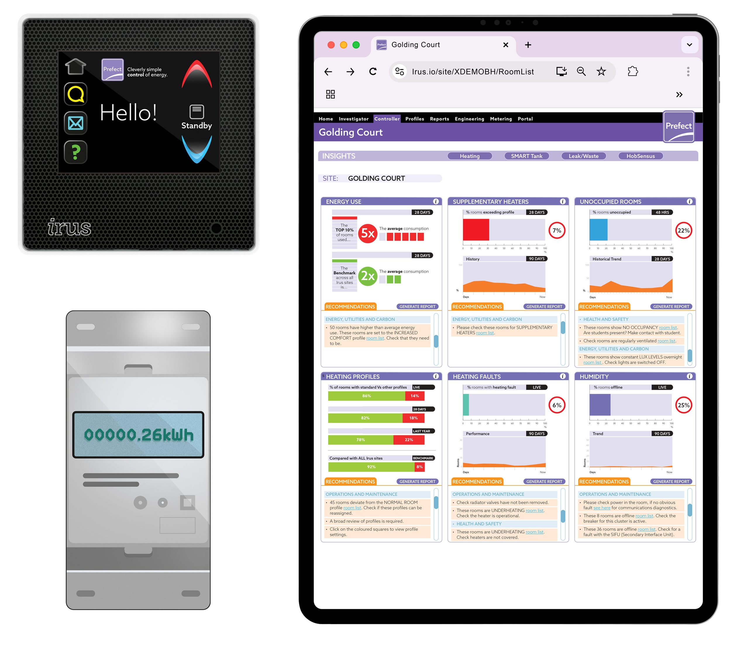 Irus provides a twin energy conservation approach. Metering - helps identify problems or over-consumption, while control - physically switches heat sources off when energy isn’t required. Operators have complete visibility of utility use and can act on issues accordingly.