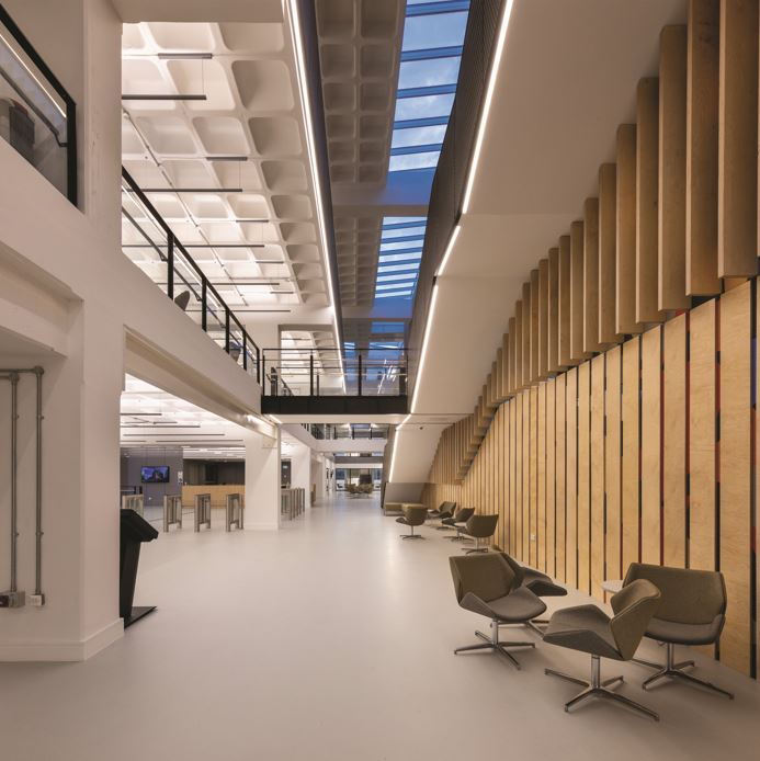 Zumtobel together with its sister brand Thorn, both lighting brands of the Zumtobel Group, worked with BDP to deliver a collection of standard and custom luminaires for the newly refurbished London Southbank University Hub (LSBU Hub).