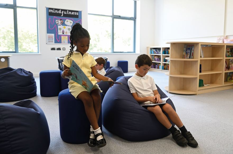 The chosen floor coverings also had to be suitable for the usage of each room, with the colourways needing to be appropriate for the age of the children using the space.” With this in mind, Forbo’s Eternal vinyl was specified in the Washed Beech wood décor for the hall, hall store, studio and servery areas, while the ground floor corridor features the Sphera homogeneous vinyl in a clear blue colourway, representing the ‘two rivers’ of the school’s name. For the first-floor classrooms, a selection of Forbo’s Tessera carpet tiles were chosen in a muted blue colourway, which helped to make them feel bright and spacious, as Simon explained: “With the first-floor classrooms designed for the older students, we felt it would be more appropriate to use a textile flooring, as opposed to the vinyl flooring used in the Key Stage 1 classrooms. As such, Forbo’s Tessera Teviot carpet tiles were installed in the Mid Blue and Blue Moon colourways, both of which fit the overall colour theme. The Tessera carpet tiles are really easy to clean, another requirement set out in the brief, so it ticked all the boxes.” In addition to the above, Forbo’s Surestep and Safestep safety flooring were used across the project to ensure the safety of students, installed in the wet rooms on both floors, as well as in the Design Technology classroom on the first floor.