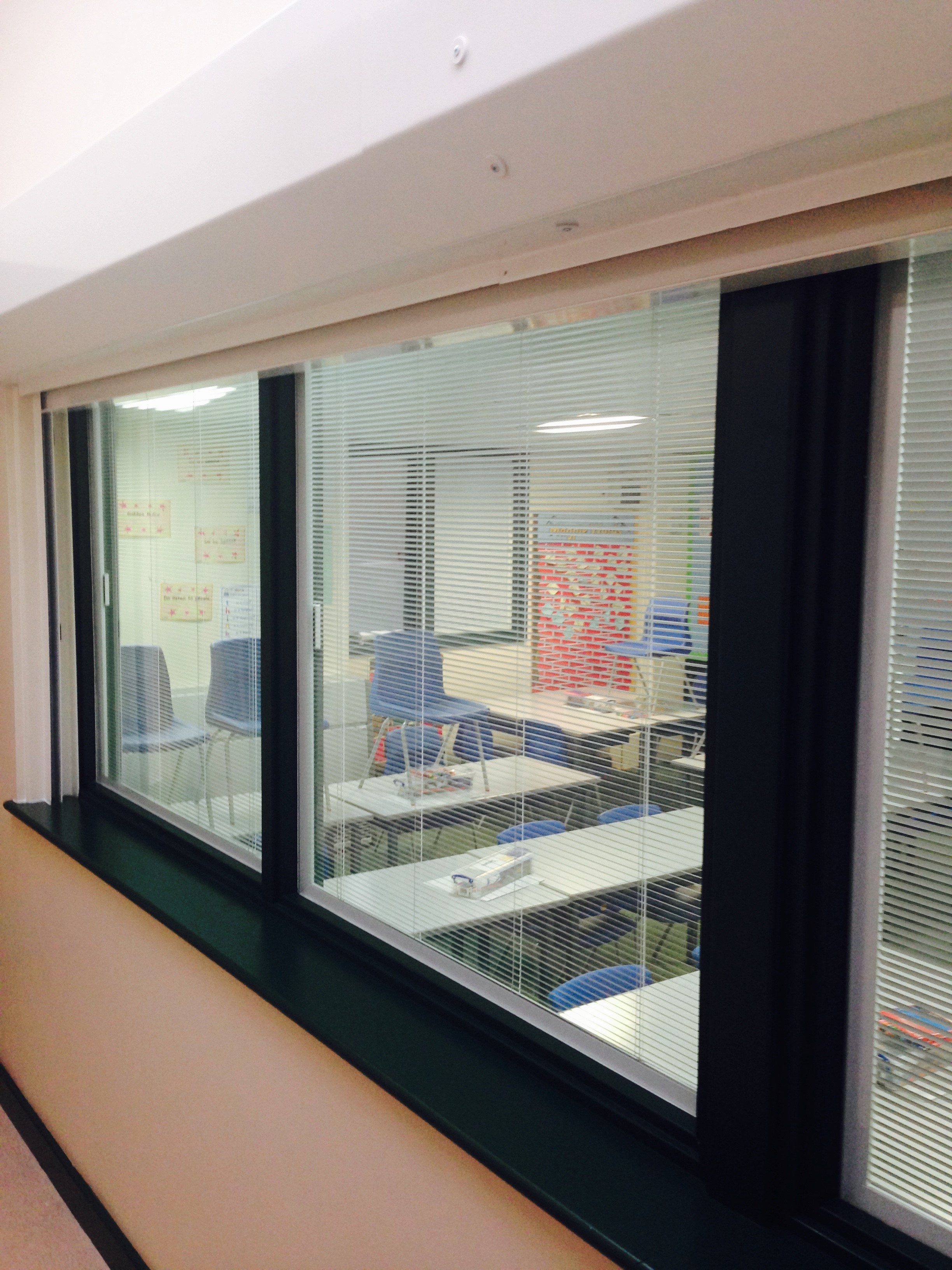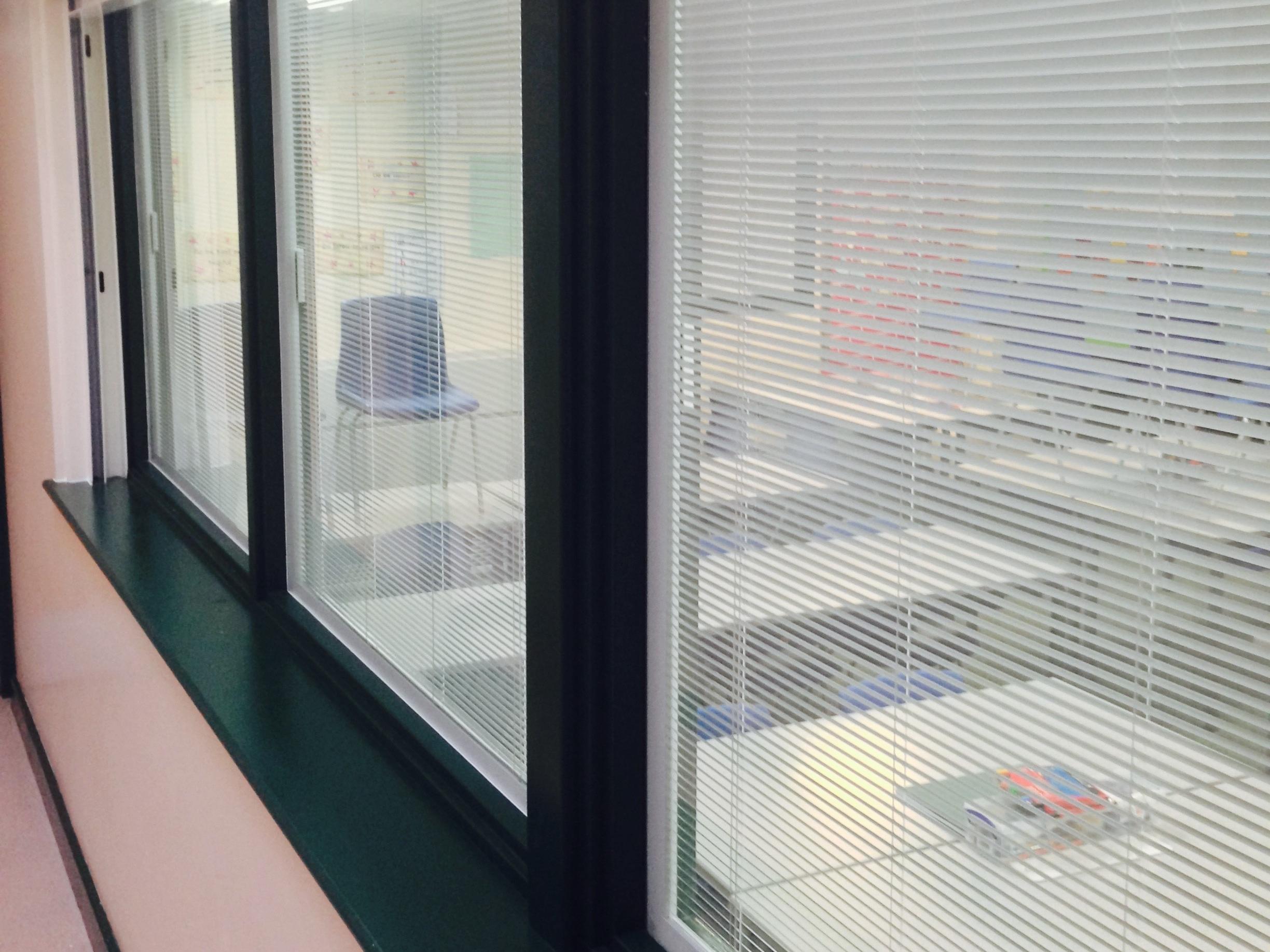 The simple-to-maintain integral blinds reduce glare, regulate the temperature of a room, and can be used across all situations: from classrooms to sports halls, windows to doors and side screens.