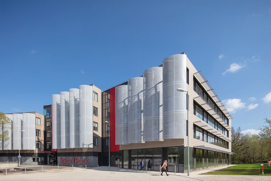 The first Passivhaus development on the University campus, SportPark Pavilion 4 is the latest development on a site that houses the UK’s highest concentration of sports organisations. The facility presents sports organisations with the unique opportunity to secure environmentally future-proof accommodation, tailored to their needs. Occupants can reduce their carbon footprint thanks to triple glazed windows that can be opened, an enhanced thermal efficient airtight building fabric, external solar shading and a highly efficient heat and ventilation system. Going beyond Passivhaus requirements, the University chose to fit SportPark Pavilion 4’s entire roof with solar panels, to further reduce its energy demand.