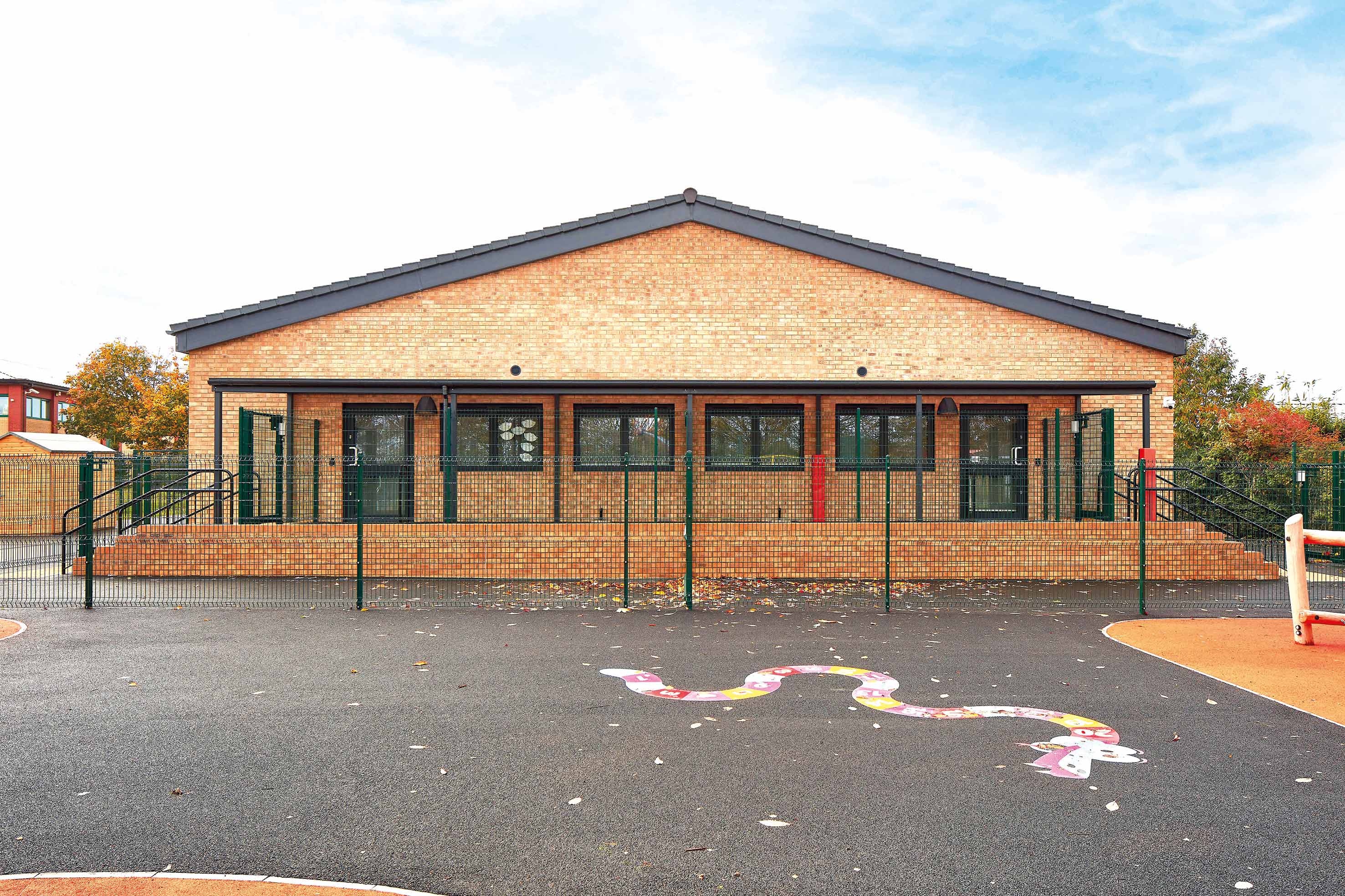 IN the construction industry, it’s sometimes easy to overlook the importance of a simple classroom block. The latest addition to Ty Gwyn Special School may look like a normal school building, but it is packed with interesting features and was delivered using modern methods of construction. The block is surrounded by security fencing with access-controlled gates and CCTV to ensure pupil safety when in school, and at either end of the block, bespoke, powder coated aluminium canopies coversmall separate playgrounds for each class, leading to a wider playground with built inplay equipment.