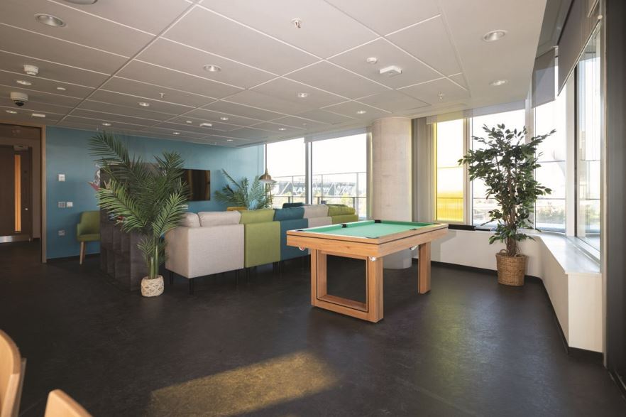 We’re pleased that nora rubber flooring was able to meet the extensive functional requirements for the space and it was refreshing to work with developers and architects who share our commitment to reducing the environmental impact of our work.” norament 975 loose-lay floor covering was used throughout the raised access areas in the accommodation to meet the functionality and sustainability expectations for this space. Made with 30 per cent recycled material and PVC-free, the covering is easily fitted and immediately ready for use, with no coatings or welding necessary; this was crucial to having the accommodation ready for students in September. Its impact on indoor air quality is minimal, having received an A+ rating, an important consideration for the sustainability credentials of the building as a whole and the wellbeing of occupants.
