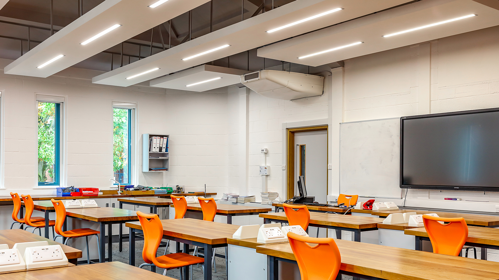 A hybrid mixing variant of the Aircool® - the Hybrid Plus2 Aircool® - can be used in classrooms, as part of a single-sided ventilation strategy. Meeting the requirements of Building Bulletin 93 (Acoustic design) and Building Bulletin 101 (Ventilation and IAQ) it has different operational modes, dependent on the internal and external environment, and sensors which respond automatically to increases in temperature and CO2. A boost function also maximises fresh air supply. This quiet, energy-efficient system is controlled by the Passivent iC8000 controller allowing for up to 40 individual zones to be managed.