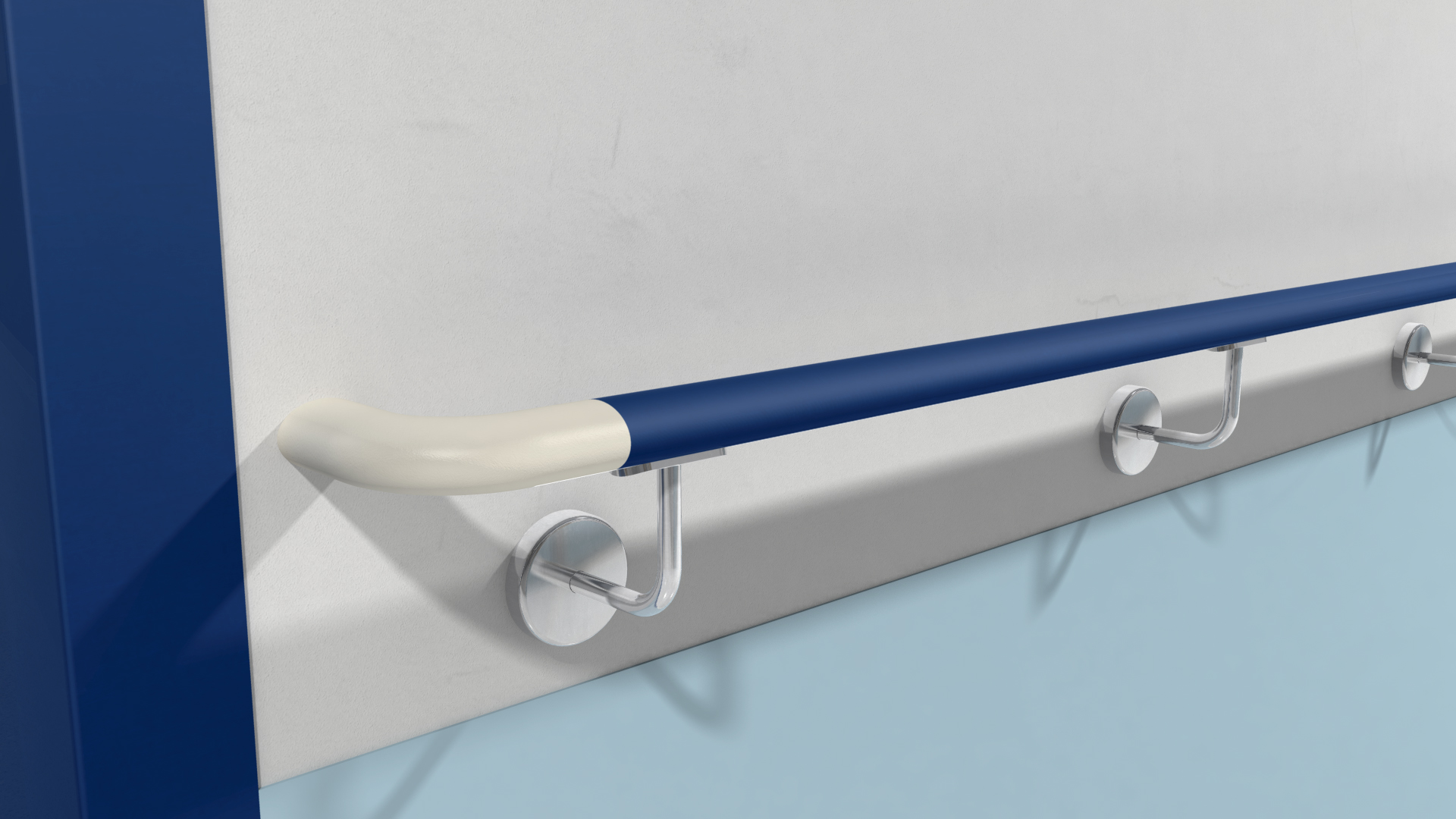 The Oval Handrail is available in a choice of colours with an accompanying range of accessories to ensure a durable and solid fit to the substrate within the environment the rail is intended for.