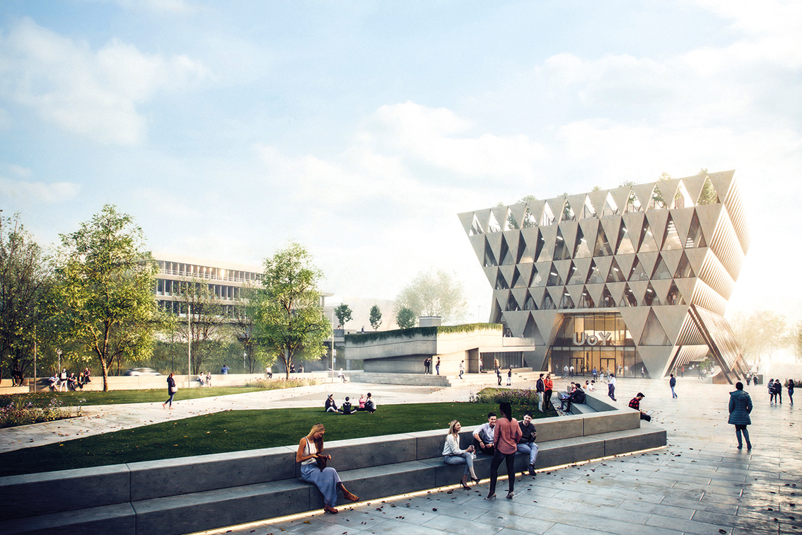 Following an international design competition, ADP Architecture and O’Donnell + Tuomey have been appointed to develop a proposal for a new flagship 5,000sqm Student Centre building and University Square neighbourhood at the heart of The University of York. Other shortlisted architects in the competition included Hurzog & De Meuron, Hawkins Brown, Adjaye Associates and Dorte Mandrup. The design team brings extensive insight and expertise within the higher education sector. ADP Architecture recently completed the Sir William Henry Bragg Building at The University of Leeds and has worked with over 30 universities across the UK, while O’Donnell + Tuomey has completed buildings for many Universities in Europe and the UK, including a campus for CEU Budapest and the LSE Student Centre and is currently working on the University of Liverpool’s new School of Architecture. The winning proposal is an iconic building design, located within a striking natural landscape, set to deliver an inspiring, engaging and welcoming heart to the campus.