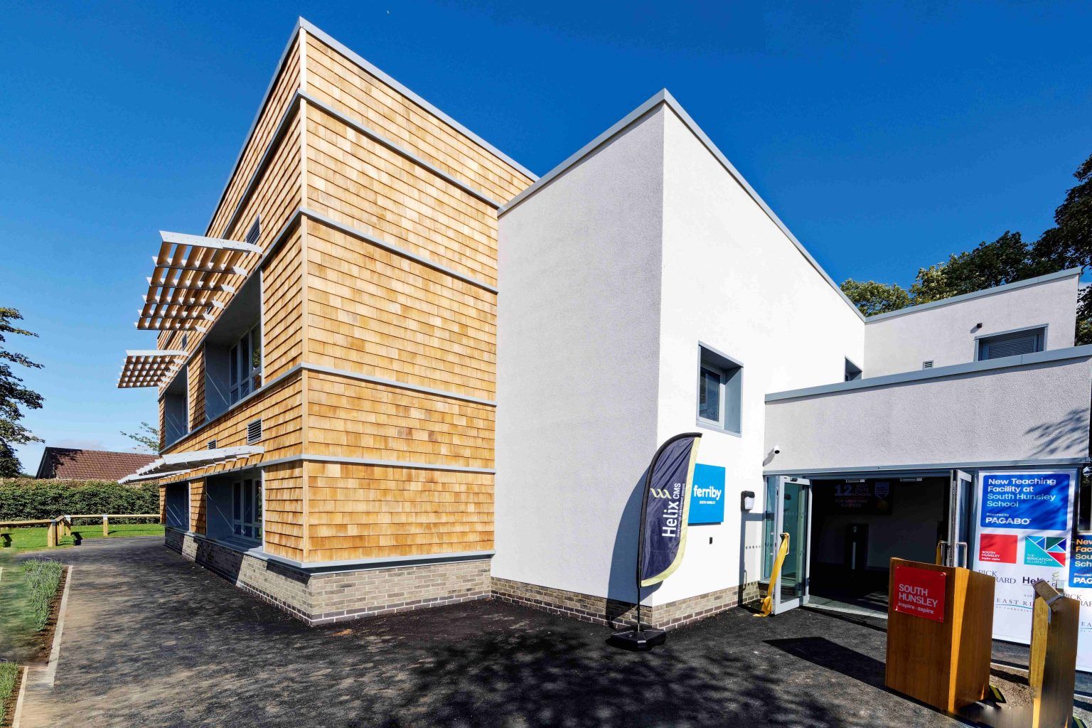 Located within the South Hunsley School campus in East Yorkshire, the two-storey teaching block was designed to support contemporary teaching and learning through a calm, welcoming and flexible environment. The building accommodates a series of modern classrooms alongside reception, administrative and support spaces, all organised to promote clarity, accessibility and ease of movement.
